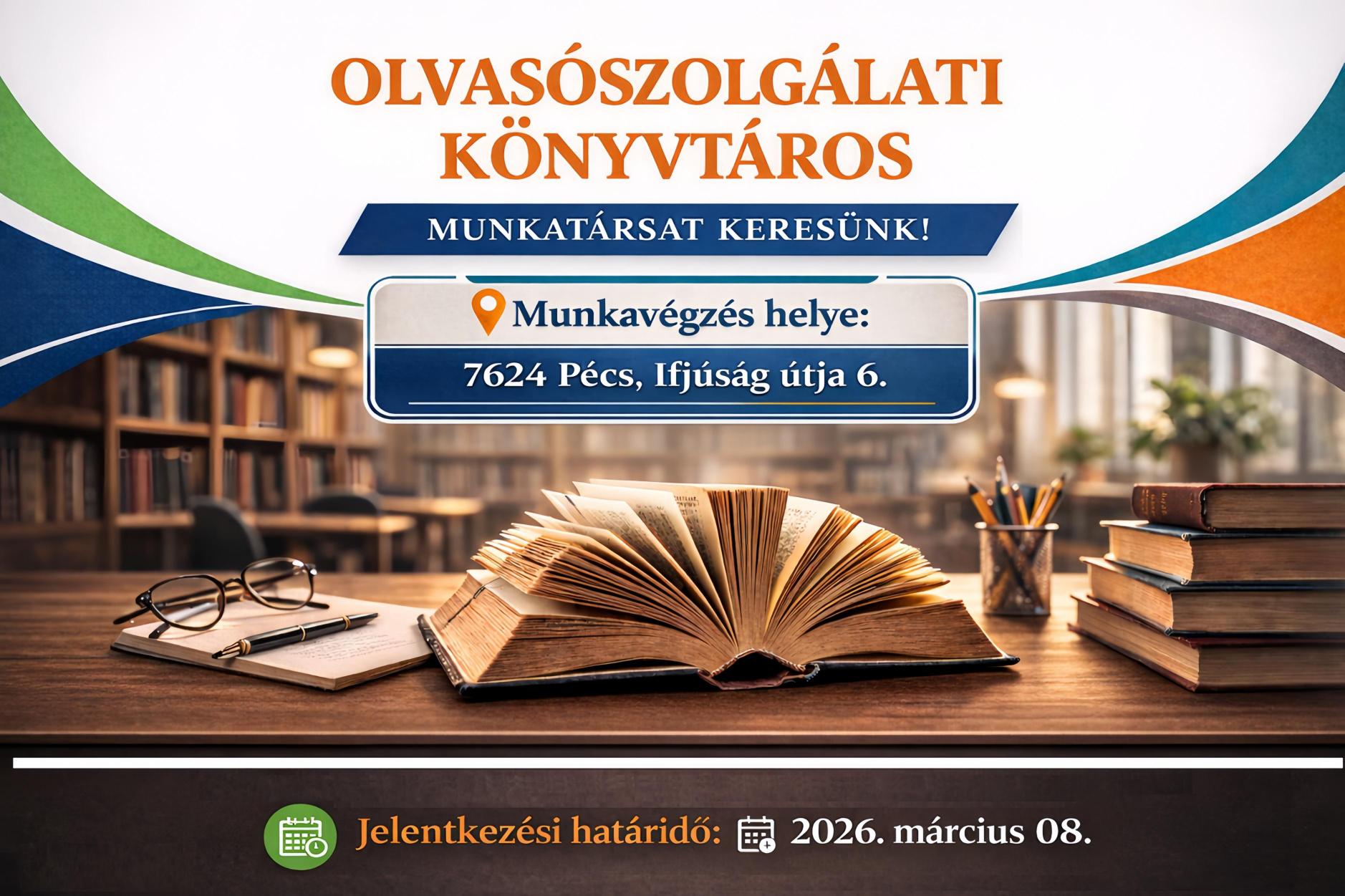 olvasószolgálati könyvtáros munkakör betöltésére, az alábbi feltételekkel:
