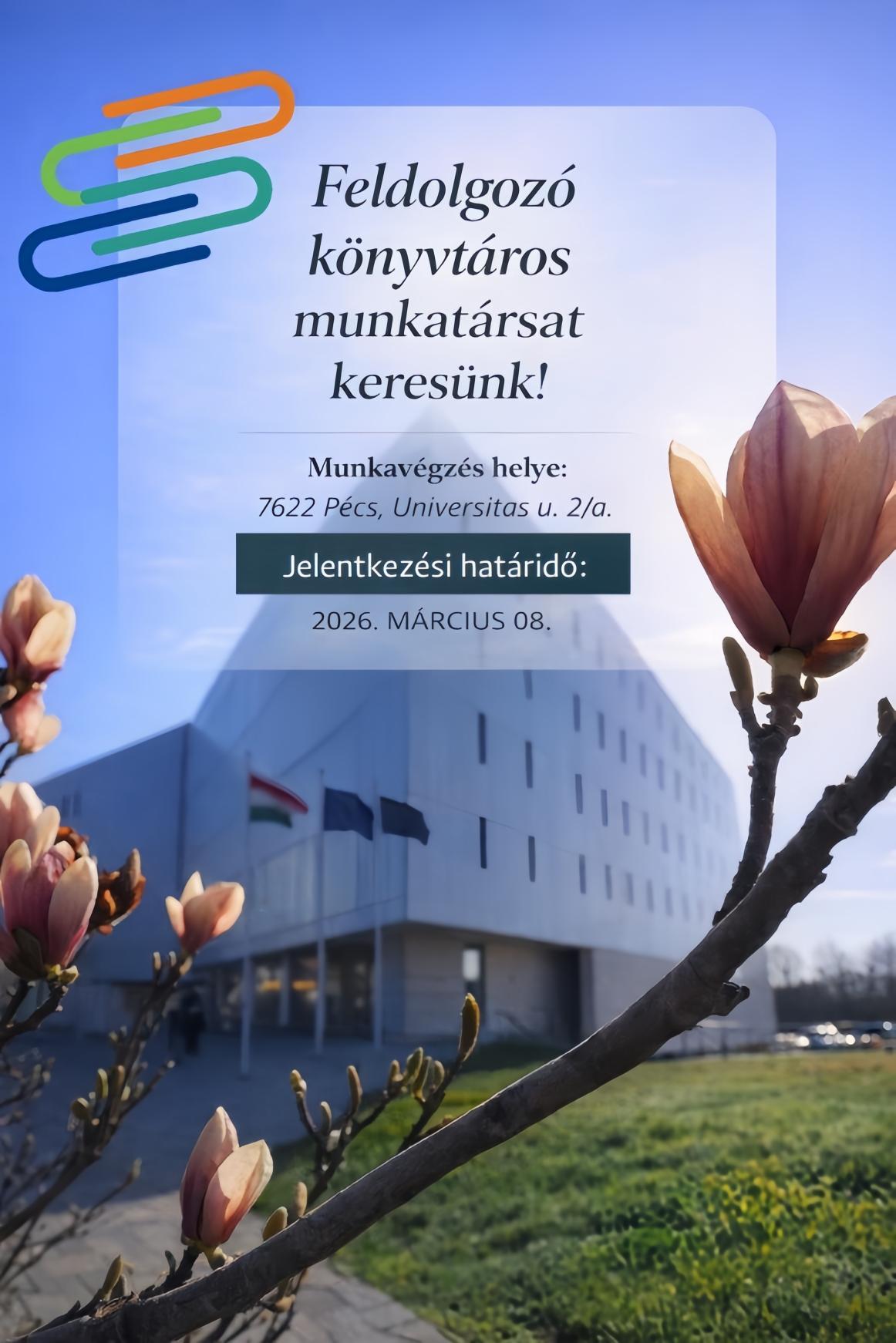 Új munkatársakat keresünk feldolgozó könyvtáros és olvasószolgálati könyvtáros pozíciókba.