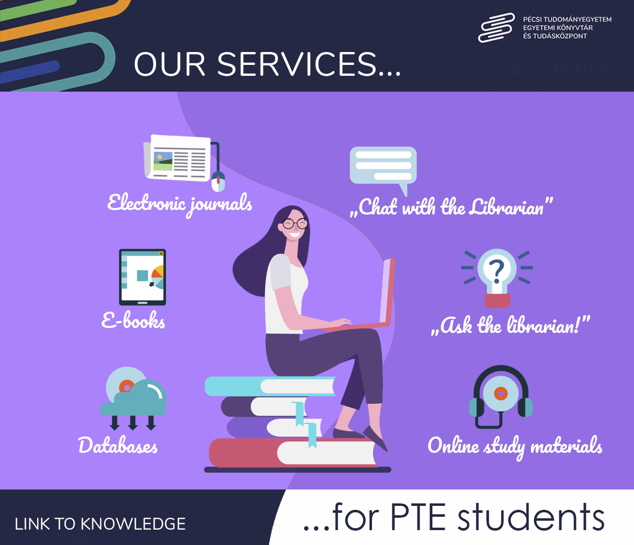 The use of the University of Pécs electronic sources is still ensured by the University Library and Knowledge Centre as usual. It is not necessary to be physically present on the University’s campus, libraries and other buildings in order to access the contents remotely.