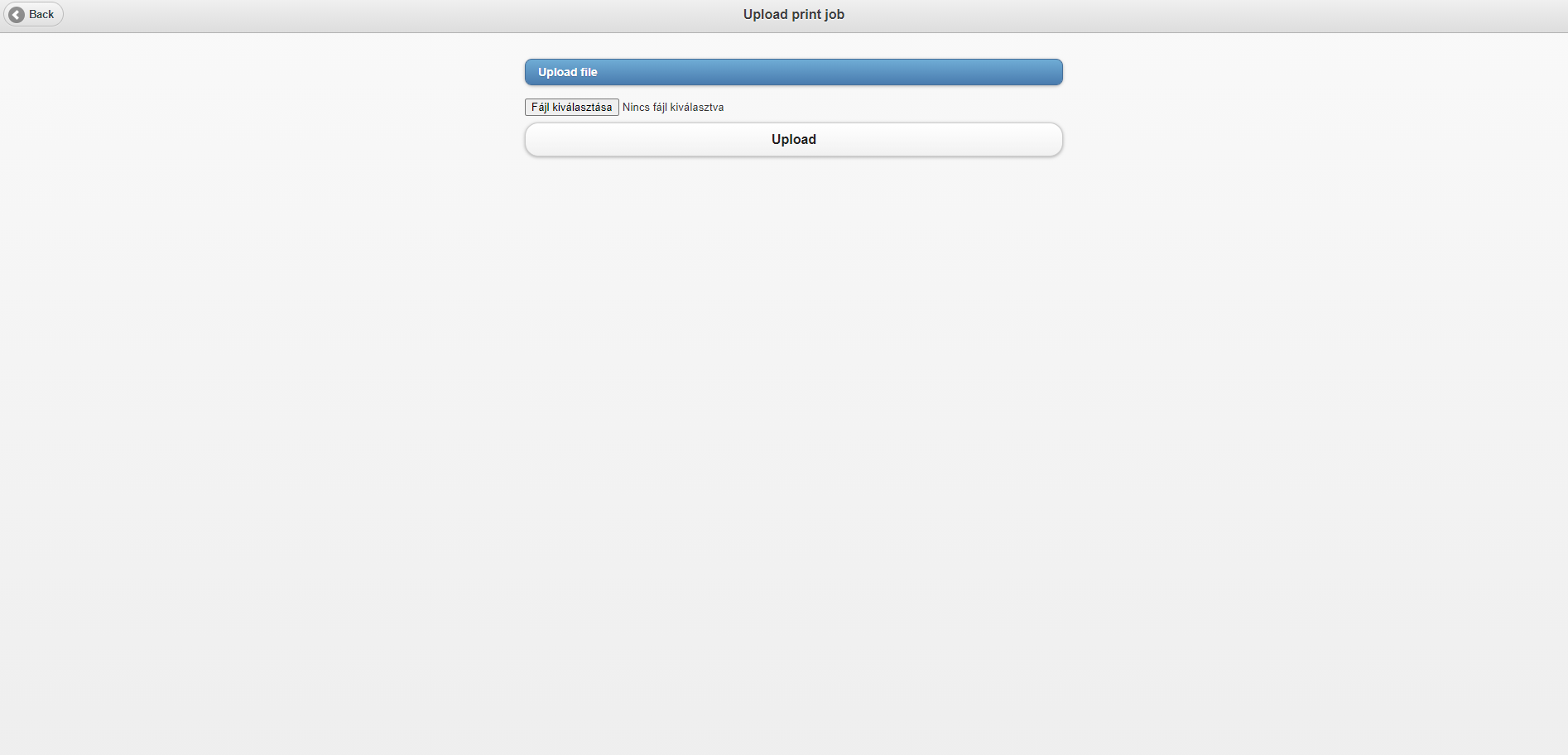 Click on the „Fájl kiválasztása” button and upload the document you would like to print. Only one file can be uploaded at a time!