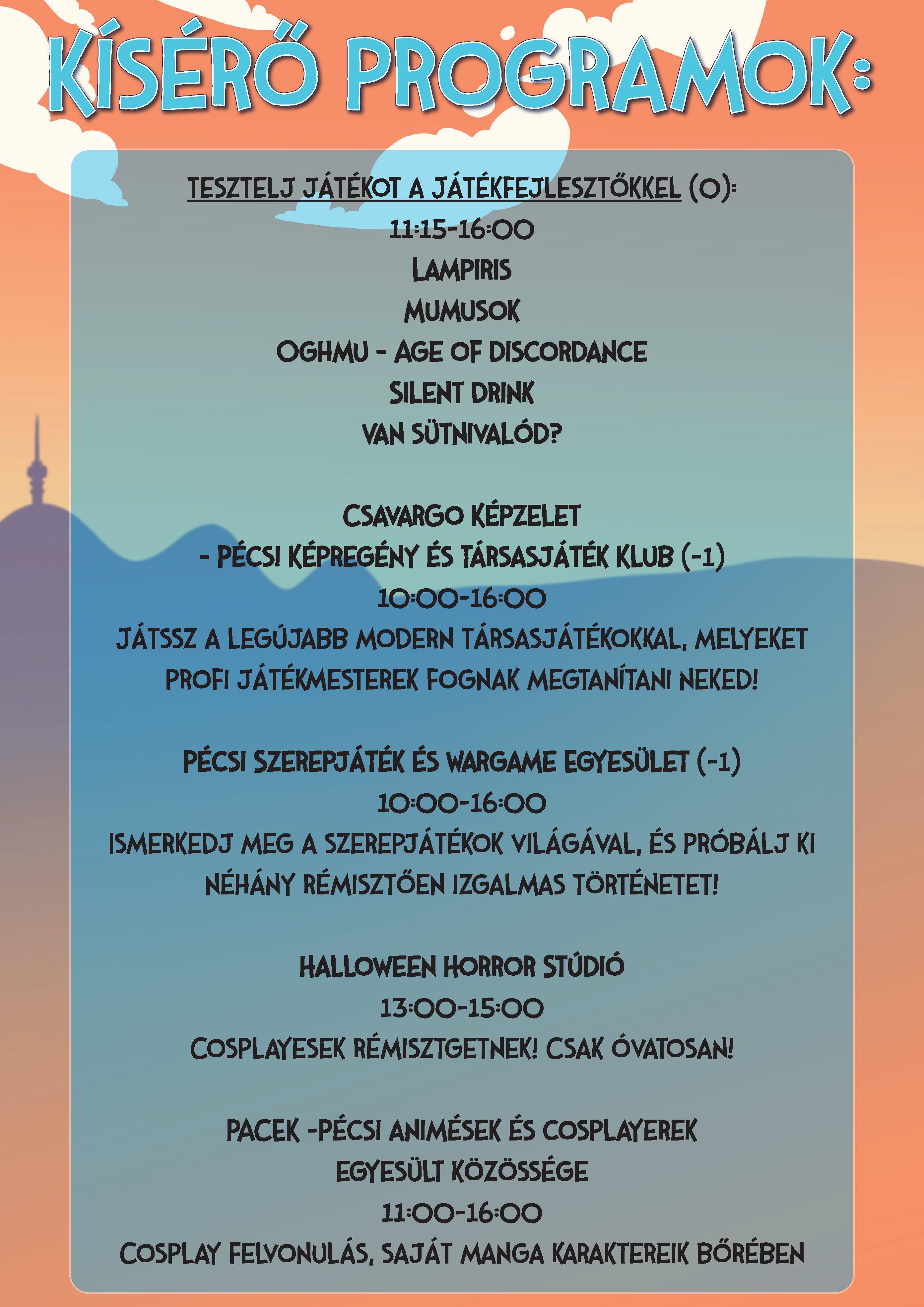 11:00-16:00: PACEK- Pécsi animések és coasplayerek egyesült közössége: Coasplay felvonulás, saját manga karakternek öltözve.