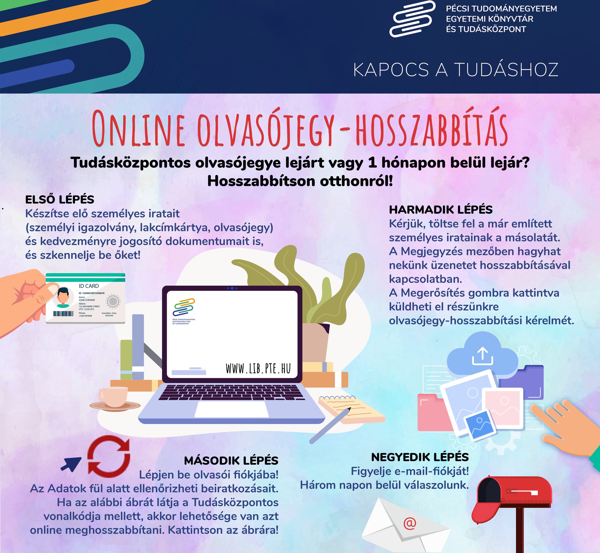 A Tudásközpontos olvasójegyeket otthonról, kényelmesen, online is meg lehet hosszabbítani négy egyszerű lépésben:
